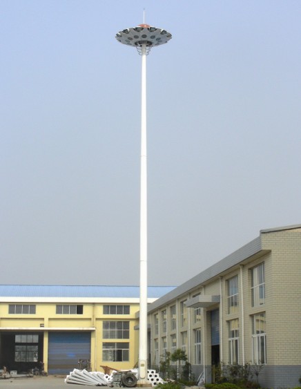 燈桿:圓錐燈桿,高度25m,厚度6mm·8mm.8mm上口徑¢240mm,下口徑¢500mm,采用優質鋼材一次模壓成型,分三節插接,燈桿經內外酸洗鍍鋅噴塑處理,鍍層厚度不少于85PM,保證20年不脫落。熱鍍鋅工藝,燈桿為白色,緊固螺栓,螺母為不銹鋼。