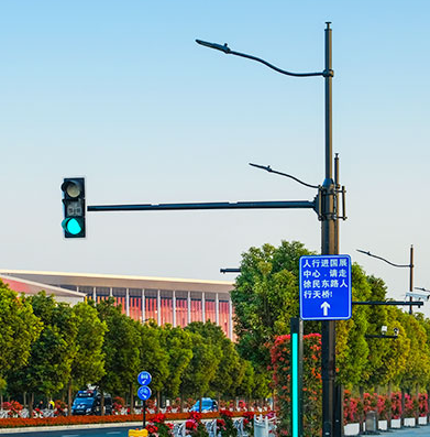 綜合桿是最近兩年才流行的燈桿,上部分為鋁件部分是安裝路燈頭的,下部分為鋼鐵主體,一般采用八邊形的,類似于交通型號燈桿,下面的鐵桿部分還可以安裝卡槽,可以安裝交通標志牌。鐵桿部分距離地面6米左右的部位,有一到兩根橫桿伸出去,可以懸掛交通信號燈,還有監控系統。