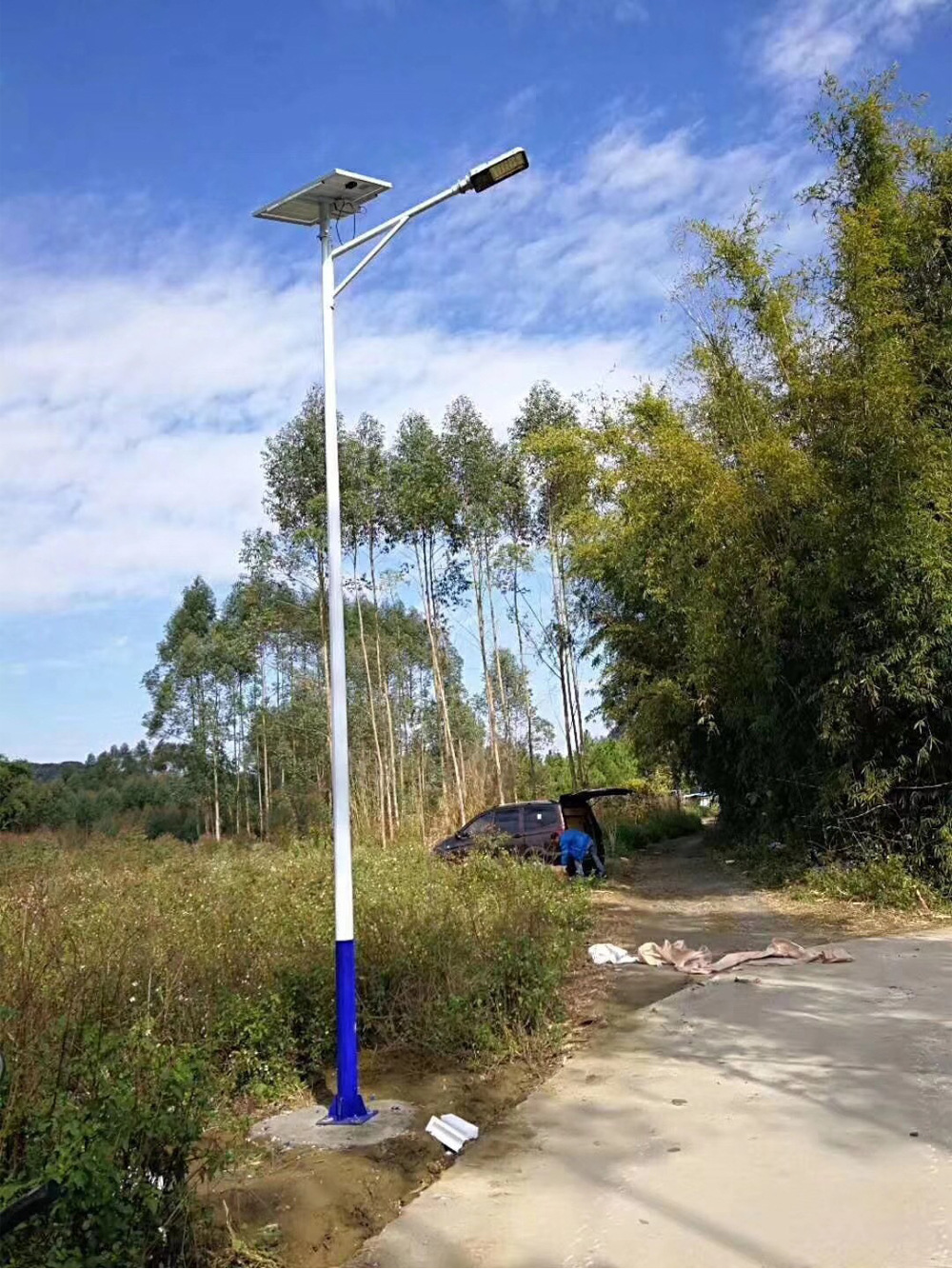 6米30W農(nóng)村太陽能路燈,適用于農(nóng)村道路的常規(guī)配置。